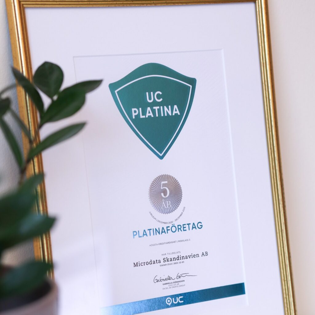 MicroData får UC Certifikat som Platinaföretag efter att ha haft högsta kreditvärdighet Guld i fem år.